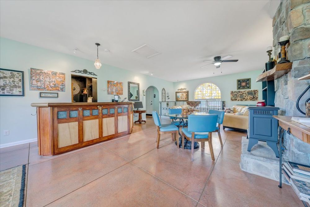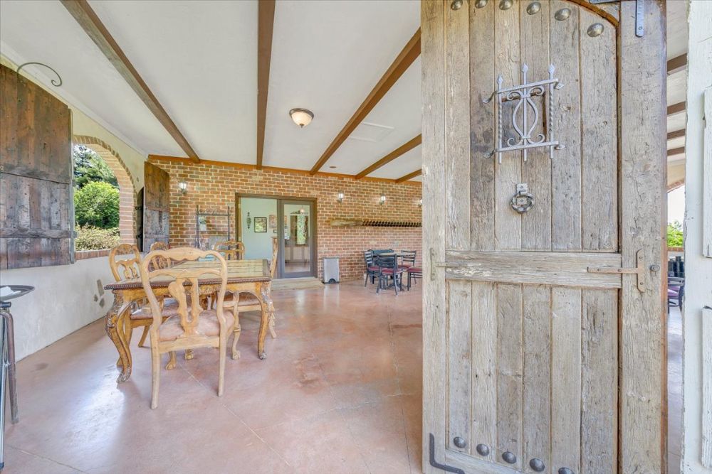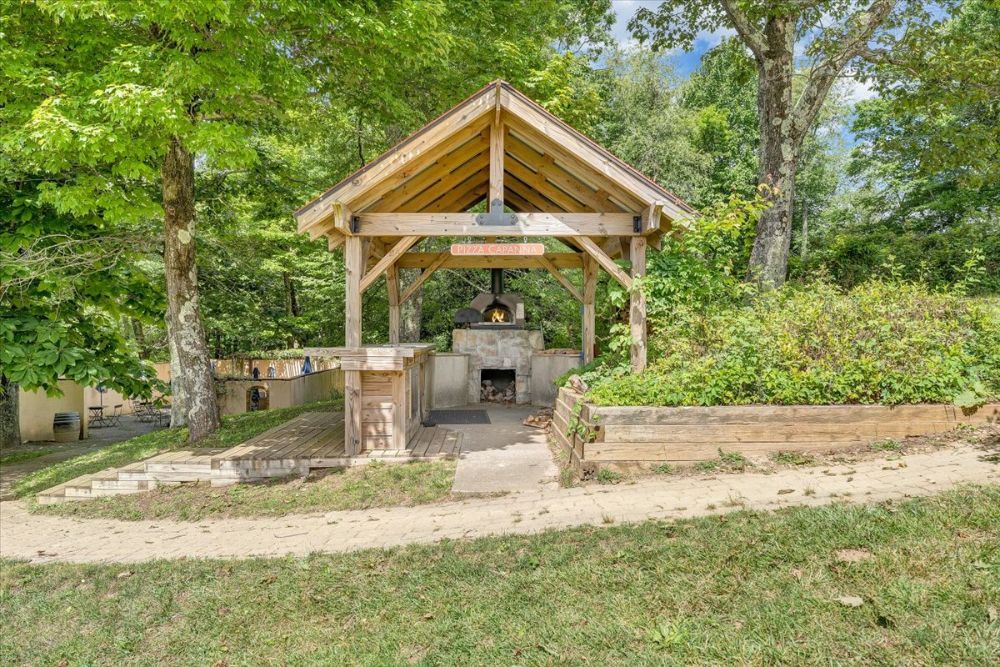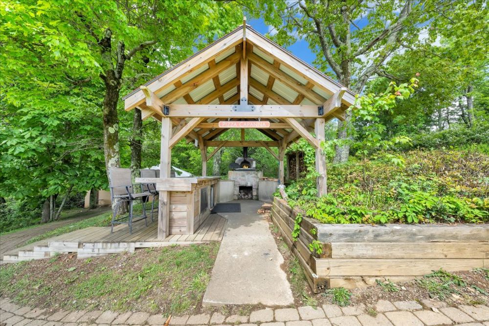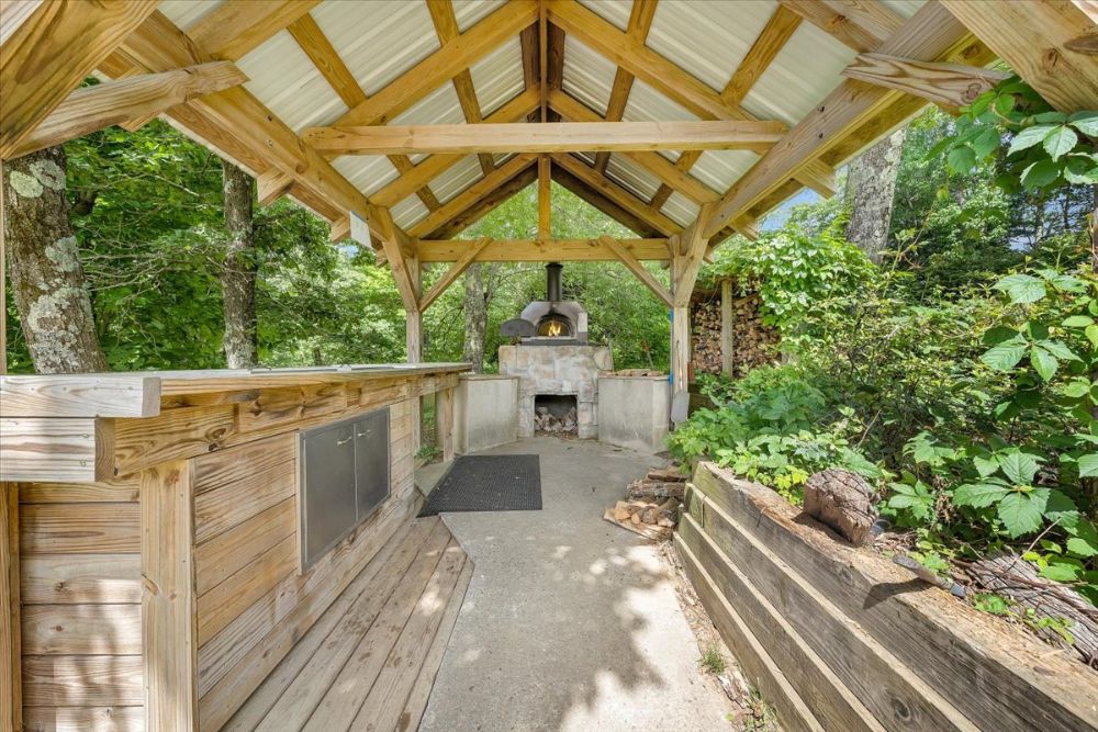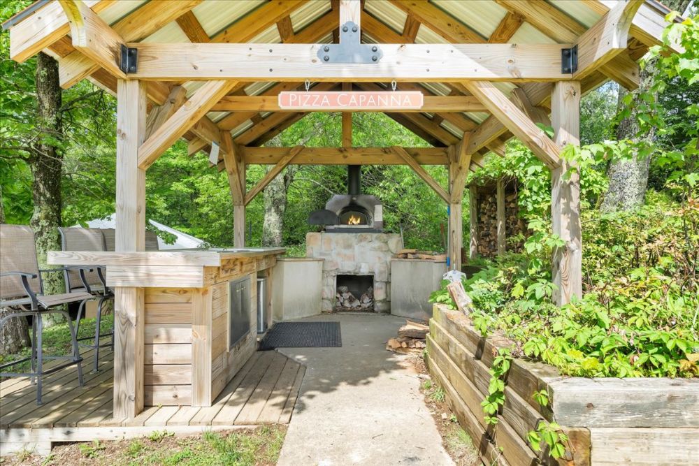- Outdoor deck area with wood-fired pizza oven