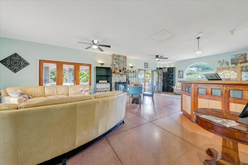 The villa is of high-quality construction—with well-suited fixtures, fitments, and furnishings (such as custom-made patio tables imported from Italy) to accommodate wine tastings, gatherings, special events, food prep (commercial kitchen licensing in place) and the overall casual enjoyment of great wine and food in an appealing setting that evokes classic Tuscany.