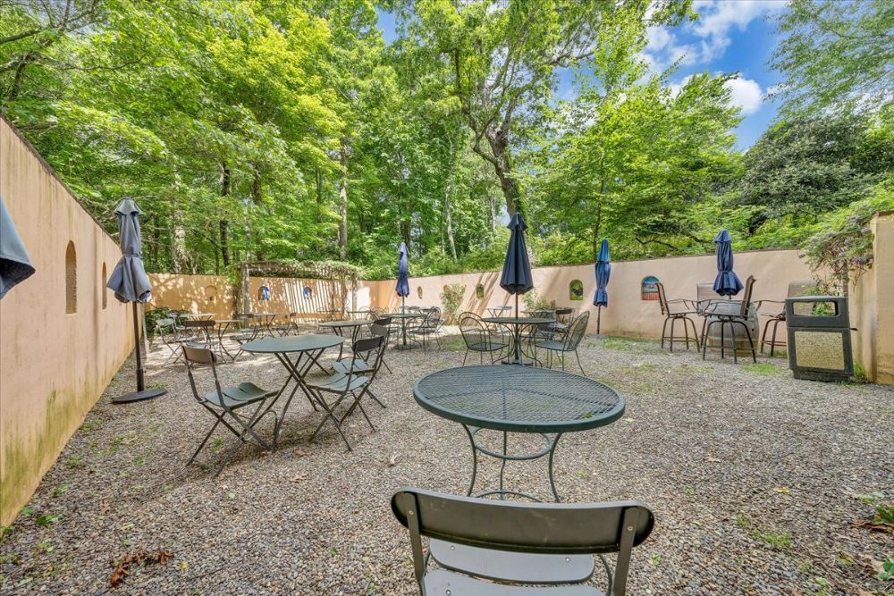 - Pleasant outdoor seating and small patios located throughout the lawn area with Adirondack chairs, umbrellas, fire pit, and similar inviting amenities
